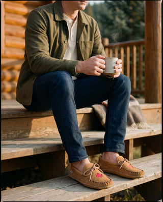 Men's Maple Leaf Suede Leather Trim Moccasins (Limited Edition)