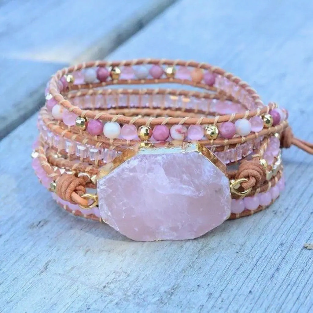 This beautiful beaded wrap bracelet is a stunning handmade art crafted with care and love. For details on the history of turquoise and to view other turquoise-coloured accessories, including this item, visit our blog "Turquoise Dreams". It is designed with natural stones and mixed beads mounted on genuine leather for a timeless and versatile look. The bracelet showcases a main semi-precious stone, adding a bold centrepiece to the intricate design. Materials include turquoise, jasper, labradorite, and agate, complemented by stainless steel accents for durability and elegance. The wrap bracelet measures approximately 33.5 inches (white bracelet measures 19.6 inches) with three adjustable closures, offering comfort and style. It is truly a unique accessory for any occasion.