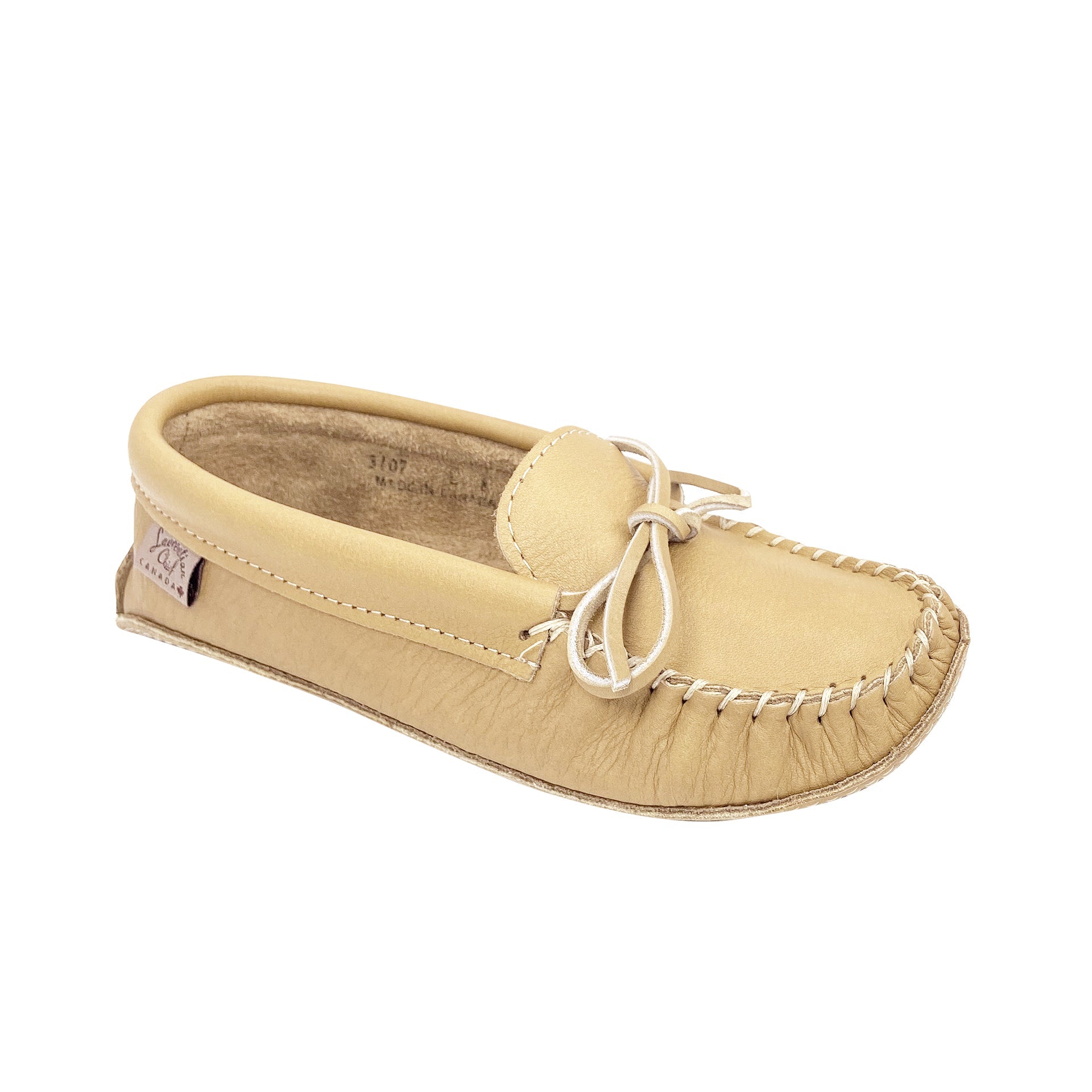 These luxurious limited edition moccasins will feel amazing on your feet. They are Canadian handmade from genuine moosehide leather in Ivory/Natural Tan colour. Real leather is a very soft and subtle feeling leather that is high quality and durable.